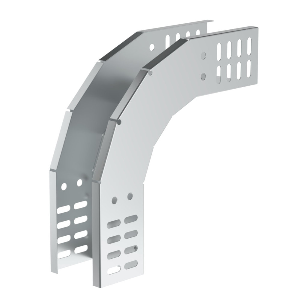 Low elbow for bending of the route in vertical direction at the angle of 90° in decreasing direction. Elbow is intended for cable trays with width 60x75, superficial treatment hot dip galvanized, for connection of elbow and cable tray it is not necessary to use special connectors.