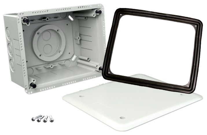 Box into thermal insulation with cover KUZ-V, configuration KB, colour light grey, package 1pcs, universal box with adjustable depth for installation not only in thermal insulation