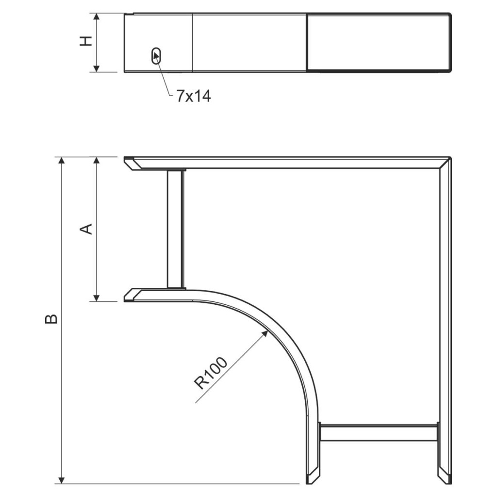 For branching of the route with angle 90°, for cable tray with dimension 50x125, stainless steel version