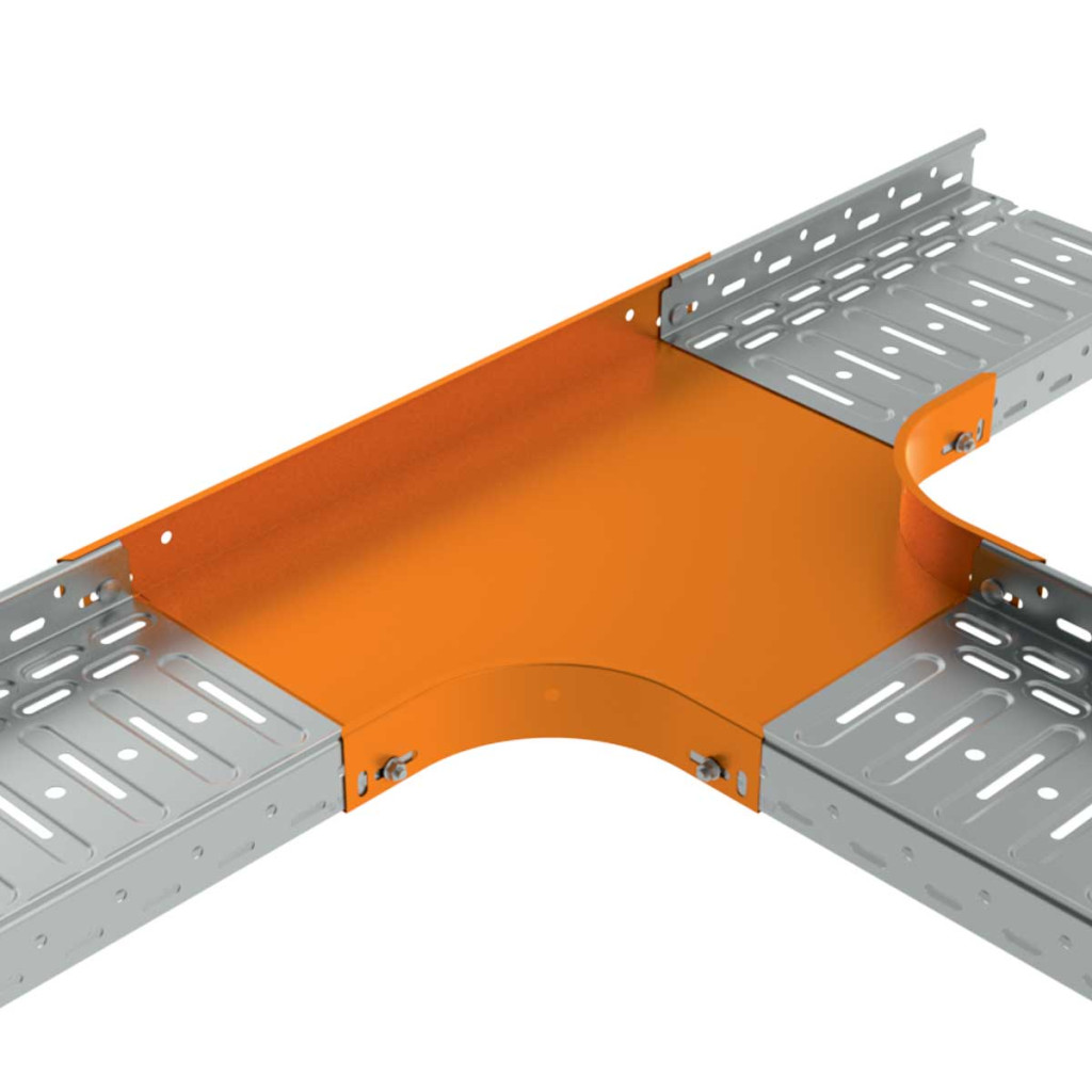 T piece for trays with dimension 50x62 varnished on outer side of the product, allows the branching of cable route