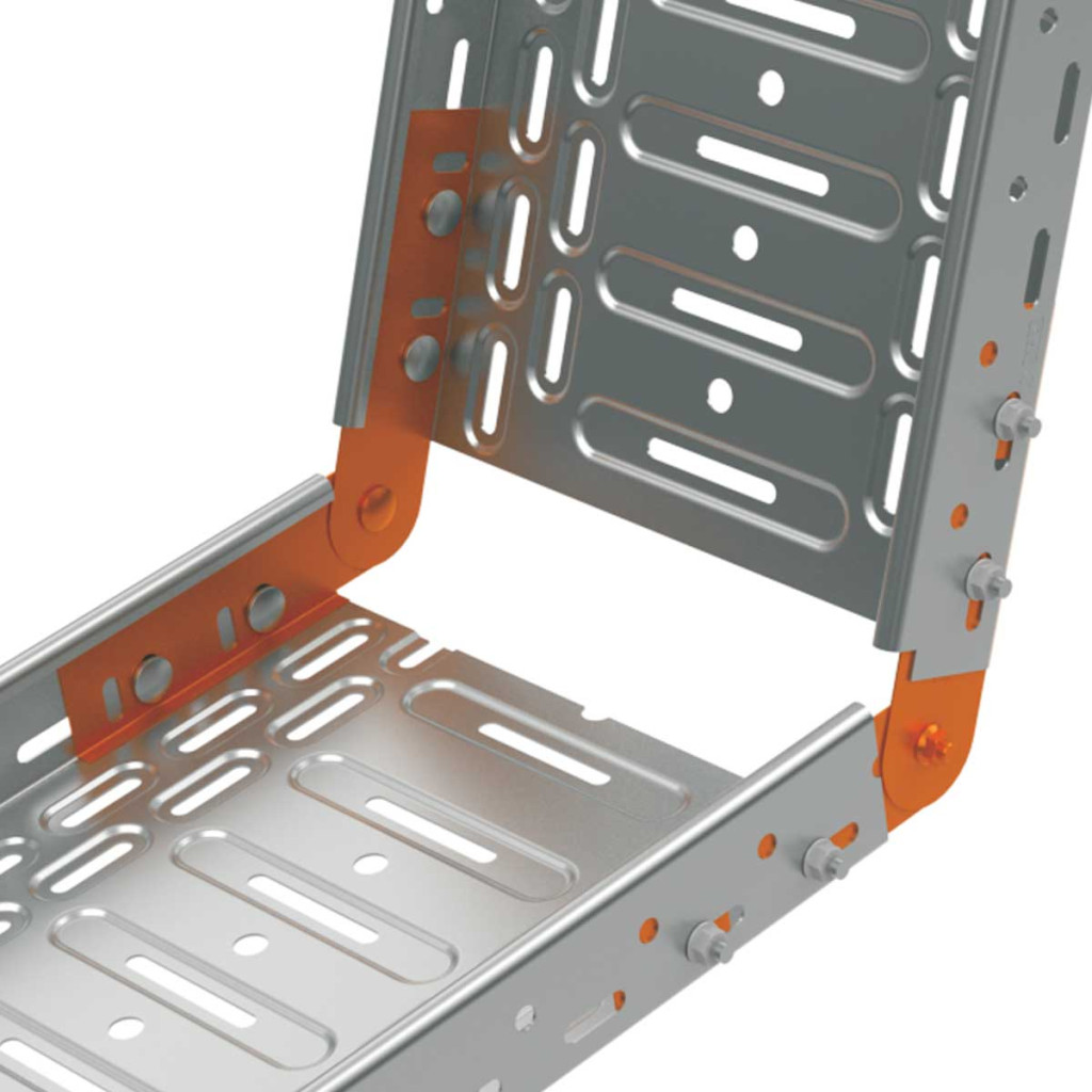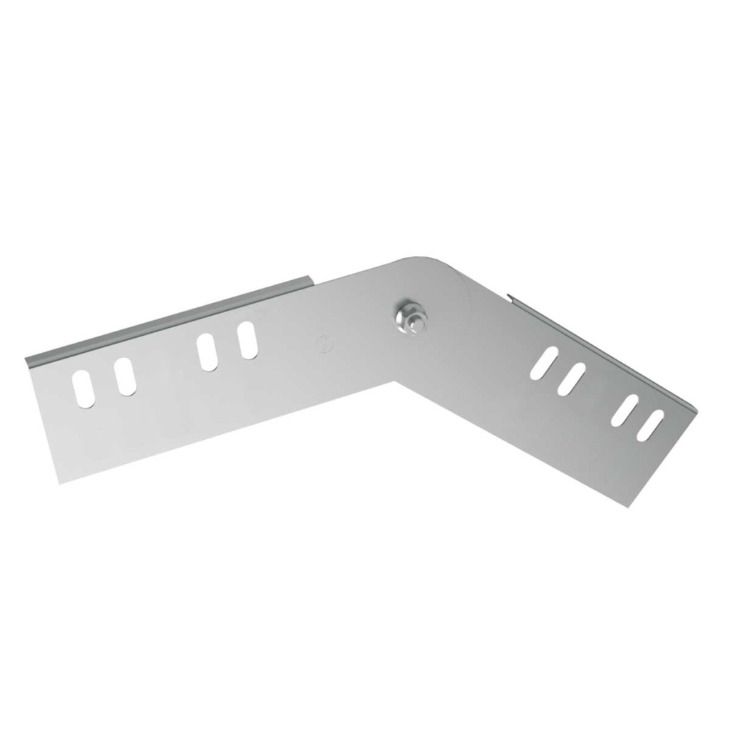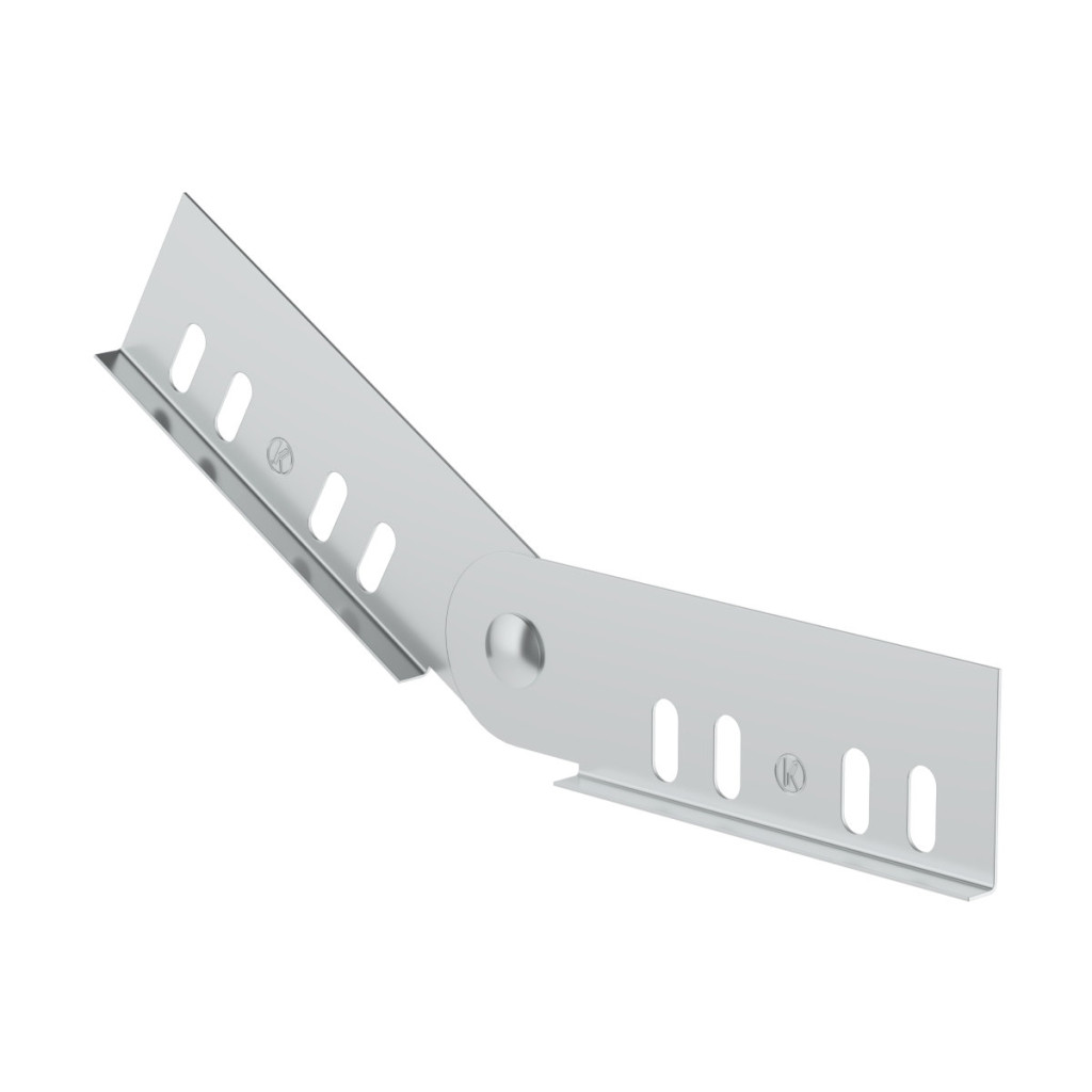 Hinged join for connection of 2 cable trays with the height of sideboard 50 mm at the adjustable angle in the horizontal direction. ZM surface finish (galvanizing Zn+Al+Mg) is intended for products with ZM surface finish or hot-dip galvanized products.