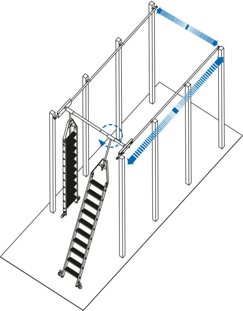 - A létra felső végén két fékezhető, siklócsapágyas kerékkel ellátott