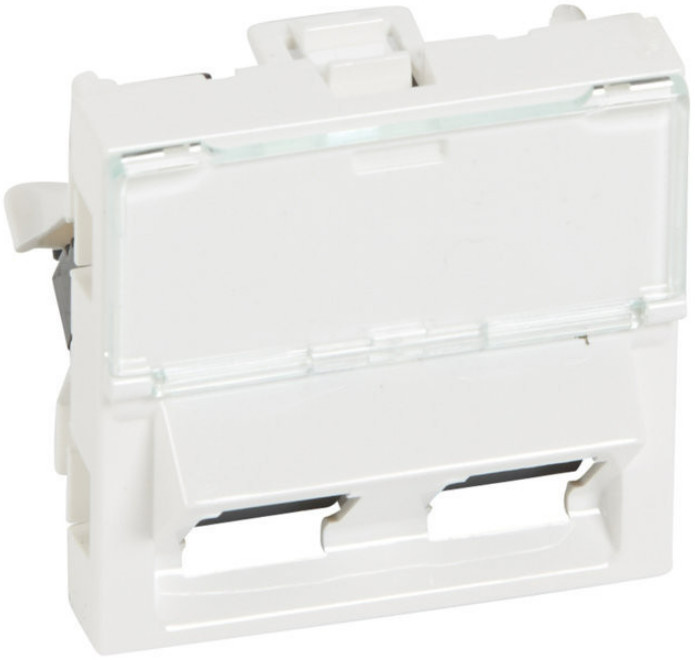 LEGRAND 076502 Program Mosaic RJ 45 informatikai csatlakozóaljzat, 2 x RJ 45 árnyékolatlan (UTP) Cat.5e, 2 modul széles, 45°-ban döntött aljzattal, fehér