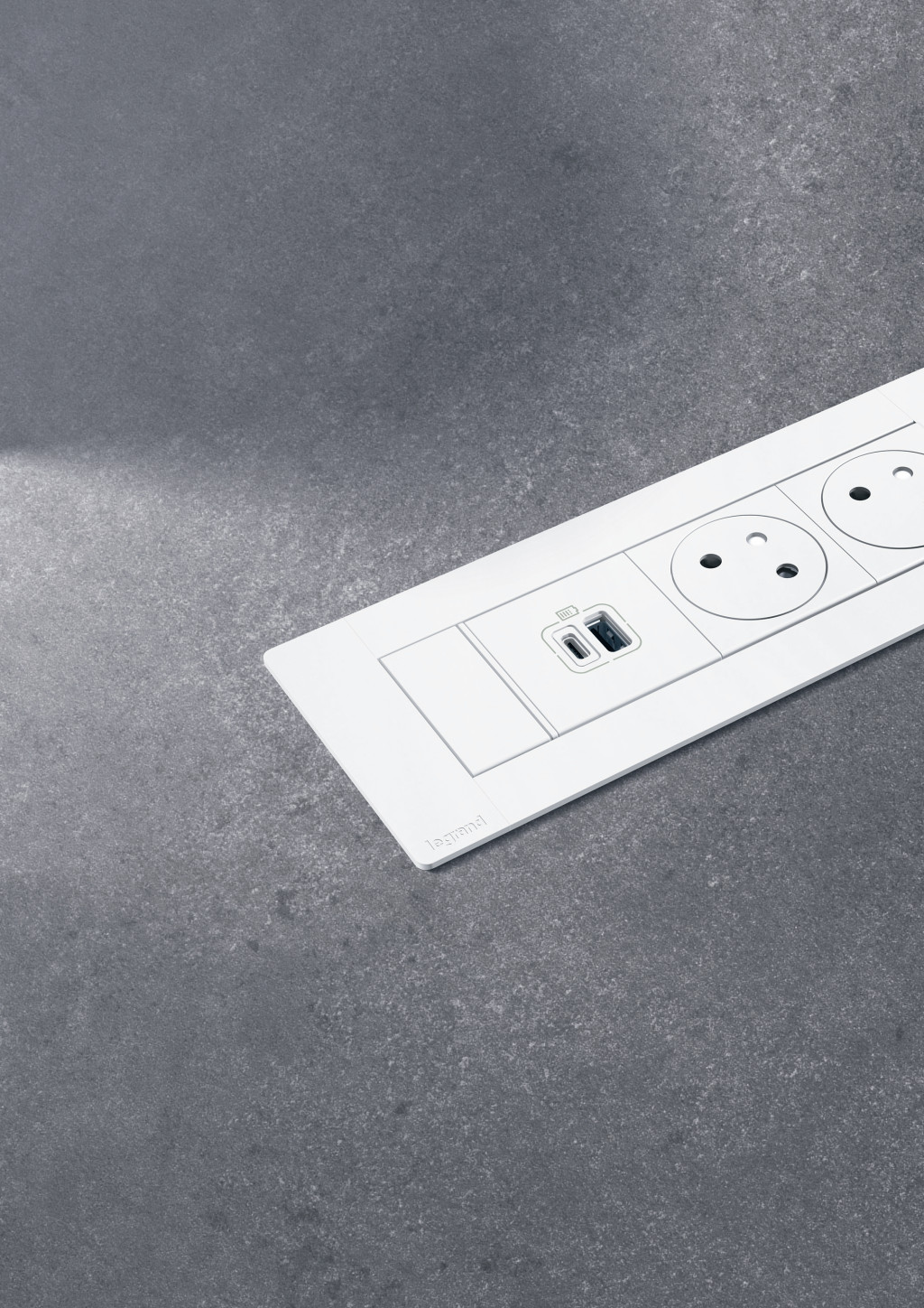 LEGRAND 654785 Incara Multilink - bútorba süllyeszthető, 4 modul, 2P+F + USB A+C aljzat, 2m kábellel, fekete