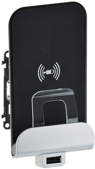 LEGRAND 755114 Valena Allure Vezeték nélküli töltőállomás USB A-típusúcsatlakozóval, 2,4 A/ 12 W, 136,5 x 70 x 56,5 mm, lopásgátlóval, 50x80 mm érzékelési terület, 10°dőlés, Fehér