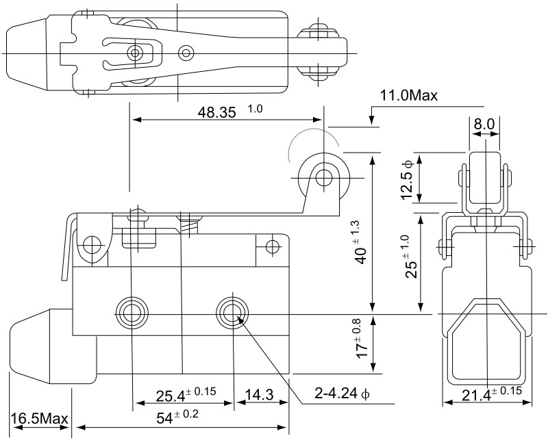 TRACON LS7121 Helyzetkapcsoló, rugószáras-görgős 1xCO, 2A/230V AC-15, 0,3A/250V DC-13, 65mm, IP40