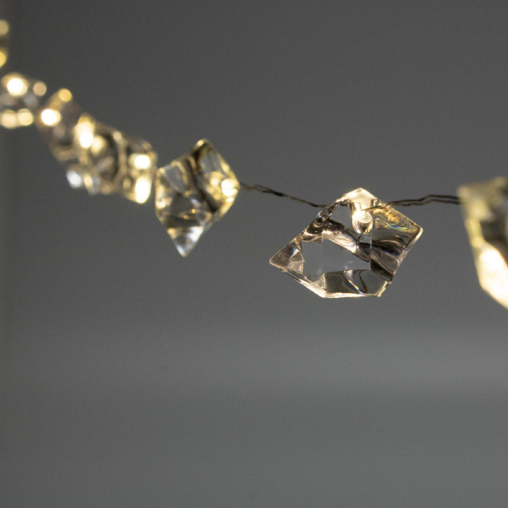 Ez a beltéri fényfüzér 1,9 méteres hosszúságával és 20 db melegfehér LED-jével kellemes, lágy fényt biztosít, amely bármilyen szobát azonnal ünnepi hangulatba öltöztet. Az akril kristály dekorációk elegánsan tükrözik a fényeket, így csillogó és varázslatos látványt nyújtanak, akár egy polcon, akár egy karácsonyfán, vagy éppen egy ablakpárkányon helyezi el a fényfüzért. Az átlátszó vezeték diszkrét megjelenést kölcsönöz, így a figyelem teljes mértékben a melegfehér fények ragyogására és a kristálydíszek szépségére irányul.