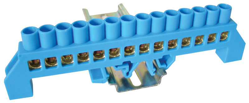TRACON NPE-B8-14 Szigetelt földelősín (N/PE), kék 230/400VAC, 100A, 8×12mm, 14P, IP20
