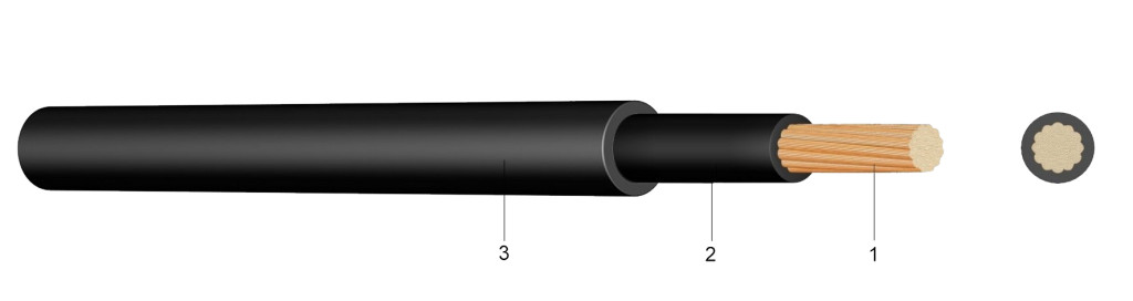 1 ..... rézvezető, csupasz vagy ónozott, vékony elemi szálakból sodrott2 ..... érszigetelés EPR bázisú gumi