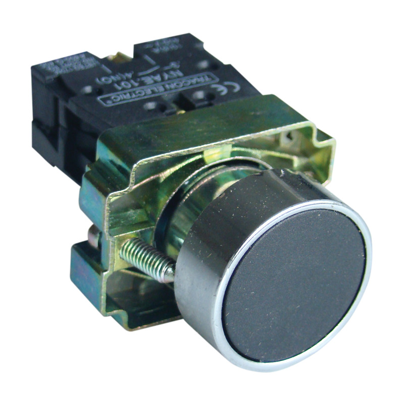 TRACON NYGBA21 Egyszerű nyomógomb, fémalapra szerelt, fekete 1×NO, 3A/240V AC, IP42