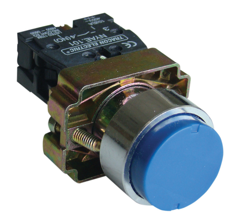 TRACON NYGBL61K Kiálló nyomógomb, fémalapra szerelt, kék 1×NO, 3A/240V AC, IP42