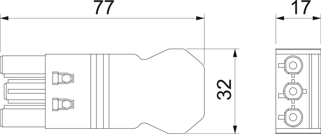 3-pólusú csatlakozó hüvely, csavaros csatlakozású GST18i típus, 1,5 - 4 mm² vezetékhez, 10,5 - 14,5 mm vezetékátmérőhöz (H05VV, NYM), szerelés nélkül húzásmentesítővel, helyszínen előre gyártható, 250 V, 16 A