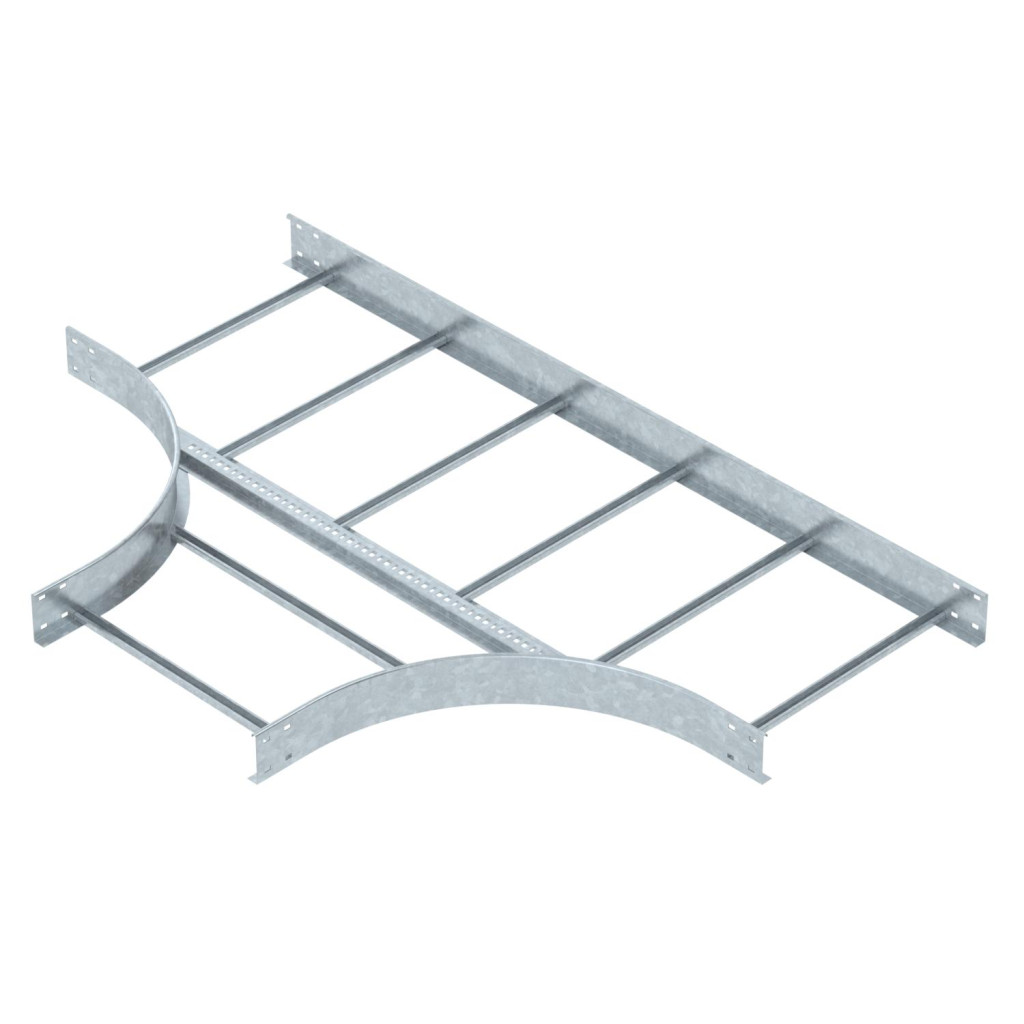T piece to create a horizontal branch, fittings for cable ladders of side height110 mm. With connector perforation. Can be used indoors and outdoors. Connector and fastening material must be ordered separately. Fittings must be supported by the support structure.