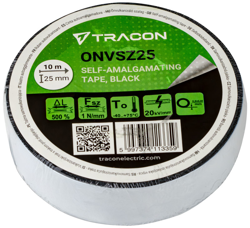 TRACON ONVSZ25 Önvulkanizáló szalag, fekete 10m×25mm, -40°C-75°C