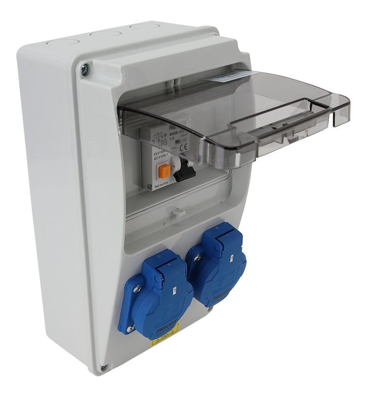 TRACON TDB02-6MV Csatlakozó doboz védelemmel, vezetékezett, készre szerelt Prot.:RCBO,Out:2×SCHUKO