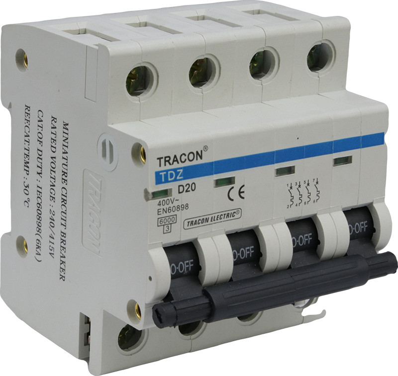 TRACON TDZ 4P 63A D Kismegszakító, 4 pólus, D karakterisztika 63A, 6kA (TDZ 4P D63A)