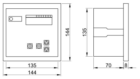 TRACON TFJA-04 Fázisjavító automatika, háromfázisú, 12 kondenzátor telephez 144×144mm