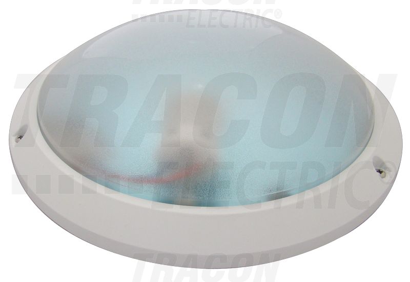 TRACON TLKVL-E27 Védett kerek falilámpa, lapos, opál bura, fehér 230V, 50Hz, max. 1×60W, E27, IP54