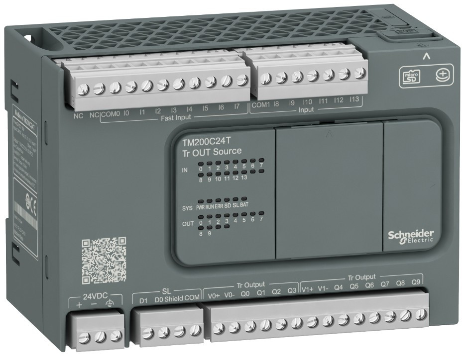 SCHNEIDER TM200C24T Modicon M200 Easy PLC, 24 I/O1xRS485, tranzisztoros kimenet (source), 24 VDC