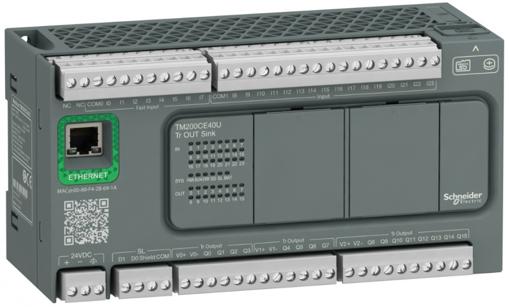 SCHNEIDER TM200CE40U Modicon M200 Easy PLC, 40 I/O1xRS485, 1xEthernet, tranzisztoros kimenet (sink), 24 VDC