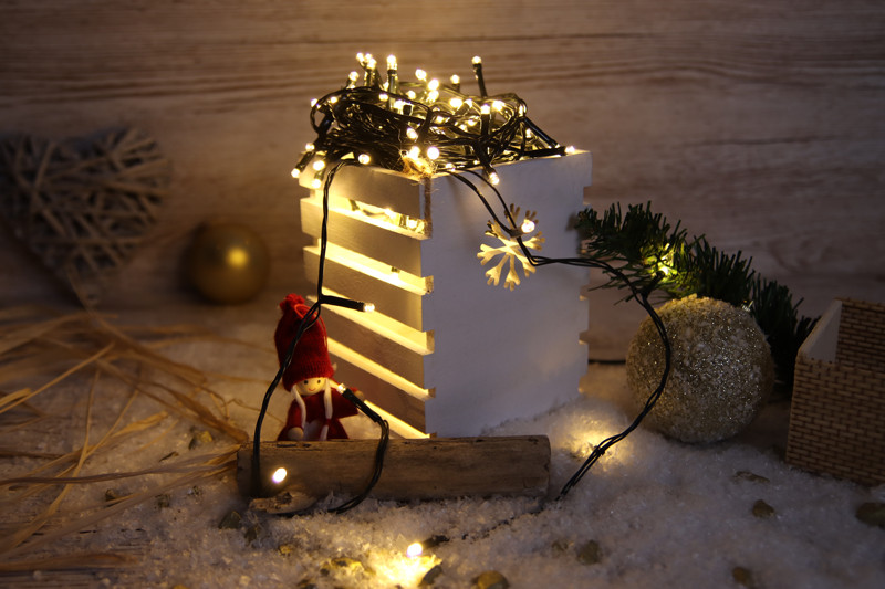 * Felhasználás: Karácsonyfák, korlátok, ablakkeretek, bokrok körbetekerése.