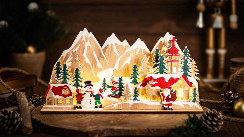 TRACON CHRVILLC15WW LED karácsonyi falu, fa, elemes (X25001) Timer 6+18h, 15LED, 3000K, 2xAA általános leírása: