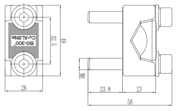 TRACON DSH3PT Prizma-kapocs 630A, 150-300 mm2, M12, 40 Nm
