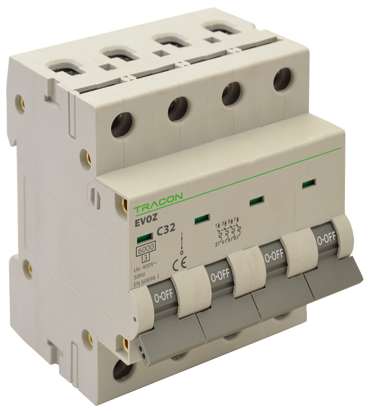 TRACON EVOZ 4P 2A B Kismegszakító, 4 pólus, B karakterisztika 2A, B, 4P, 6kA (EVOZ 4P B2A)