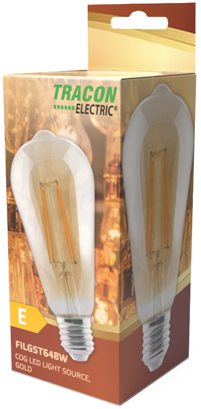 TRACON FILGST648W COG LED fényforrás, arany 230 VAC, E27, 8W, 800 lm, ST64, 2500K, EEI=F