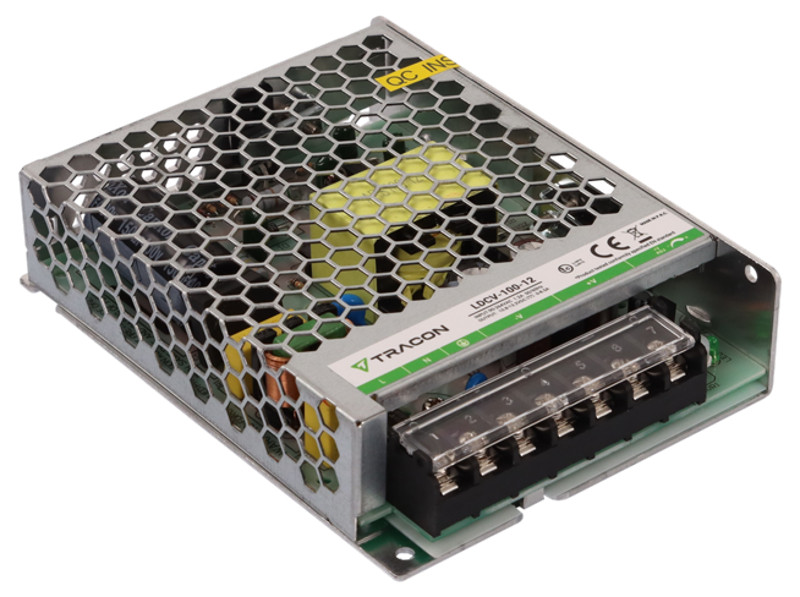 TRACON LDCV-100-12 Fém házas LED meghajtó 90-264VAC/12VDC,100W,0-8,5A, IP20