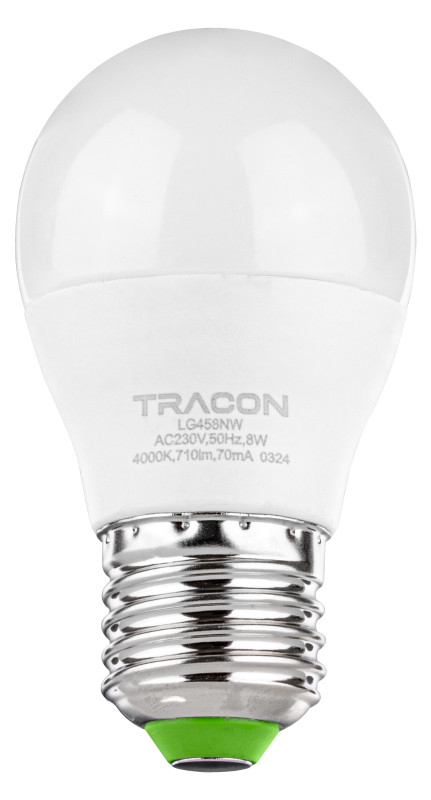 TRACON LG458NW LED fényforrás 230 VAC 50Hz, 8 W, 4000 K, E27, 710 lm, 180°, G45, EEI=F
