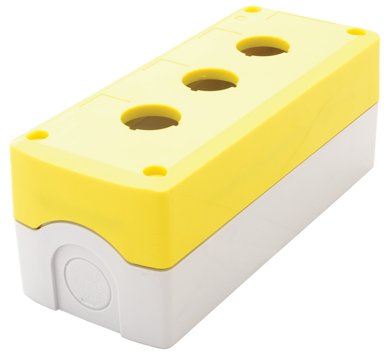 TRACON NYGD-3YE Összeállított tokozat nyomógombokhoz, sárga, 3-es d=22,5, IP65, 2×PG-13,5