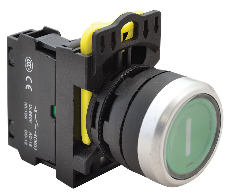 TRACON NYK3-P1 Jelölt nyomókapcsoló, zöld, (fehér I) 1×NO, 5A/230V AC-15, IP65