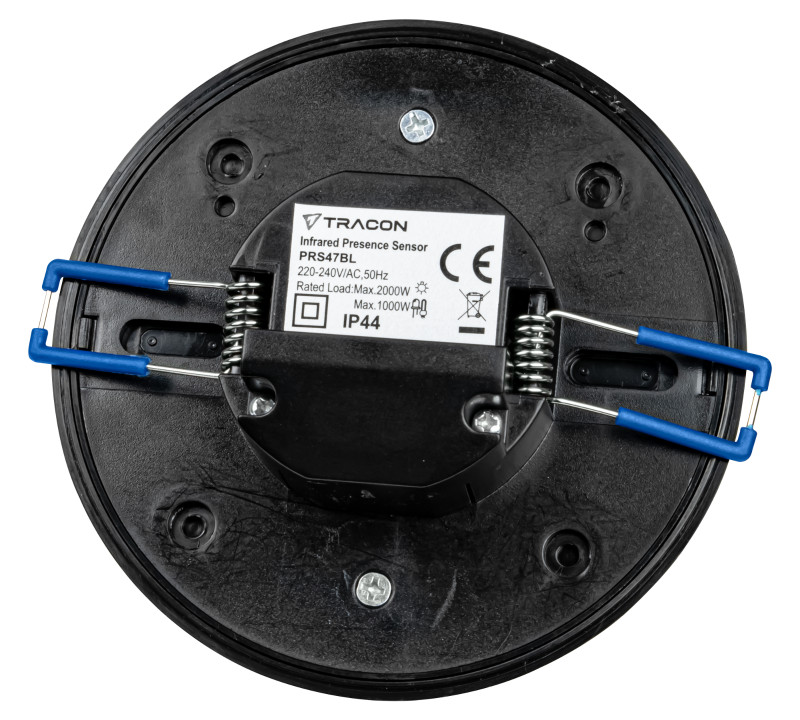 TRACON PRS47BL Jelenlétérzékelő, fekete 230V, 50Hz, 360°, 1000W, 1-20m, 10s-30min, 3-2000lux, IP44