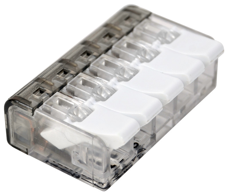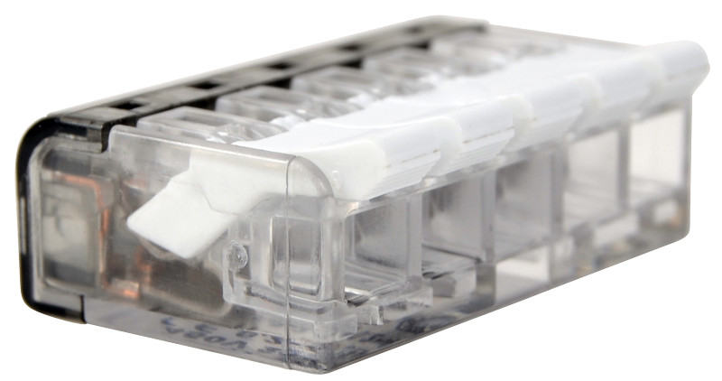 TRACON RVON5 Csavar nélküli vezetékösszekötő, nyitható átlátszó 0,2-4mm2, 32A, 450VAC 5P