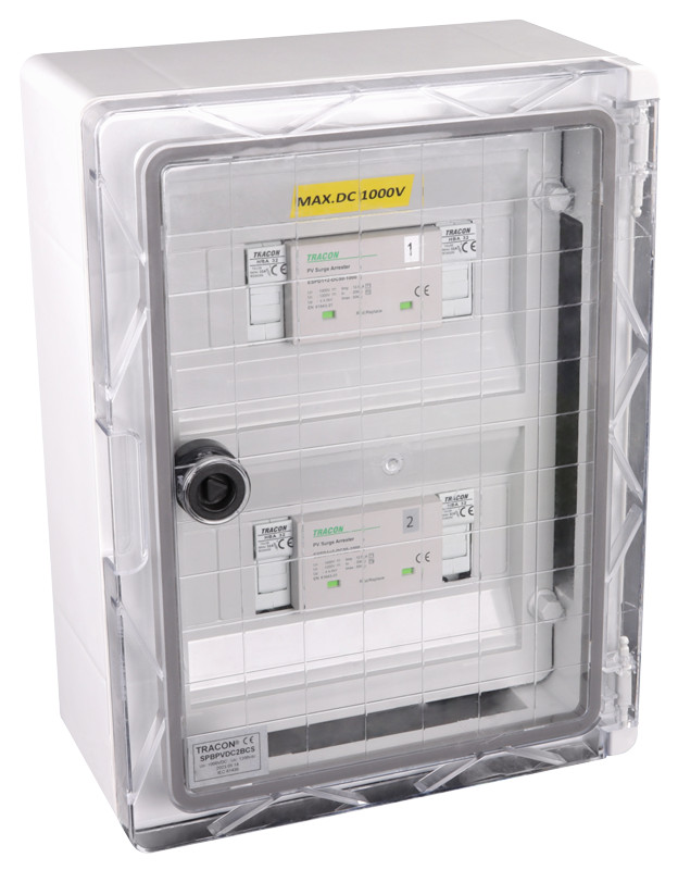 TRACON SPBPVDC2BCS Túlfeszültség-védelmi doboz fotovoltaikus rendszerekhez 380x260x130mm, IP65, DC1+2, Un=1000VDC
