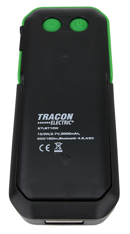 TRACON STLBT10W Akkumulátoros LED kézi lámpa Bluetooth hangszóróval 10/3W, 6000K, 3.7V 3000mAh, 500/180lm, 3,5h, Bluetooth 4.2