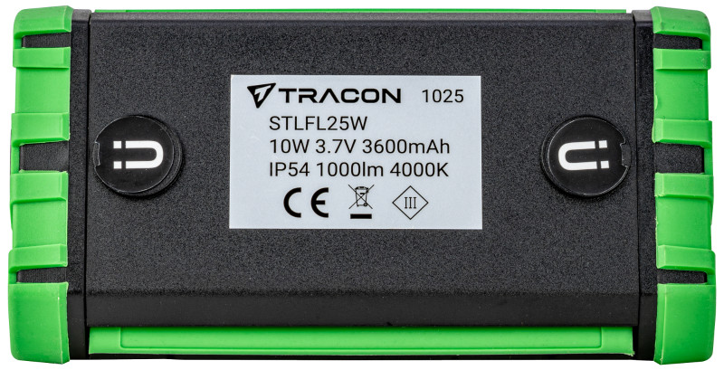 TRACON STLFL25W Akkumulátoros LED szerelő reflektor 10 W, 4000 K, 3,7 V, 3600 mAh, Li-Ion, 1000 lm, 1,5h, IP54