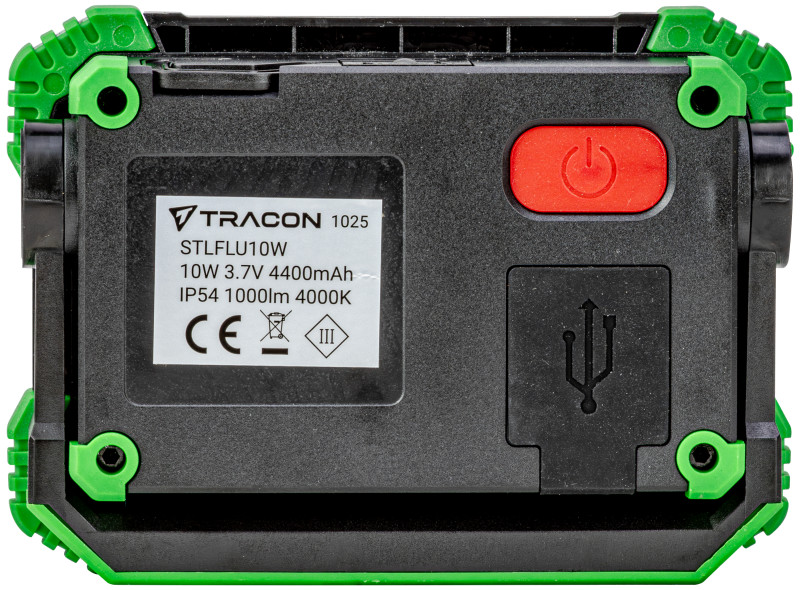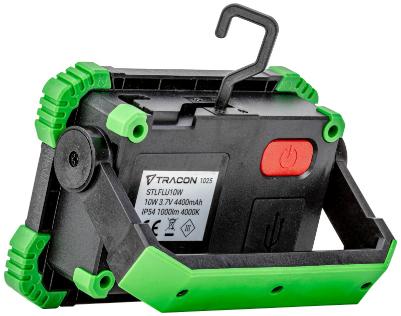 TRACON STLFLU10W Akkumulátoros LED szerelő reflektor powerbank funkcióval 10W, 4000 K, 3,7 V, 4400 mAh, Li-Ion, 1000 lm, 3 h, IP54