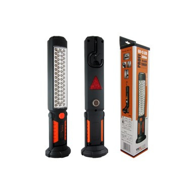TRIXLINE LED-es újratölthető kézi zseblámpa csúszásmentes ABS bevonattal, piros figyelmeztető lámpával, pozicionálással, autoadapterrel, mágnesekkel és forgó kampóval a felakasztáshoz.