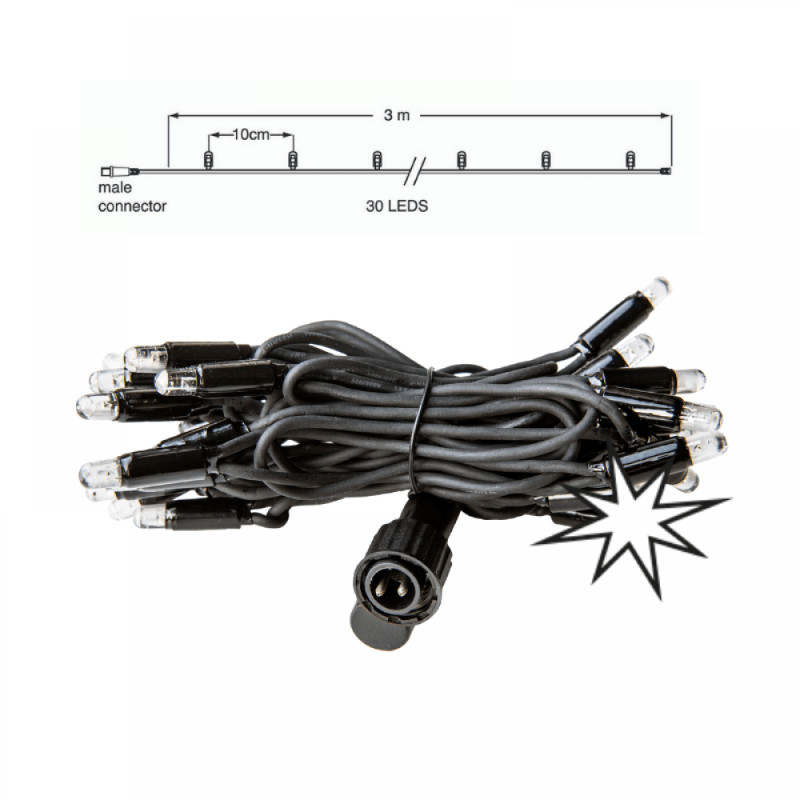 Tronix 011-116 PS230 LED fényfüzér 3m fekete vezeték 2400K WW+ & villogó CW 4/1