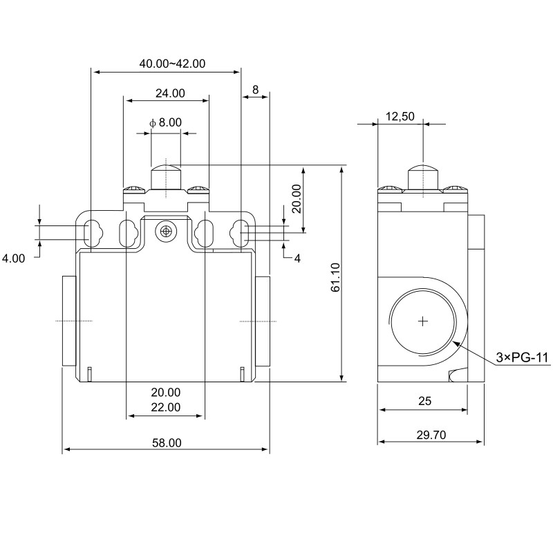 TRACON VT110 Helyzetkapcsoló, kúpos-ütközős 1xNO+1xNC, 6A/230V AC-15, 0,3A/250V DC-13, IP65
