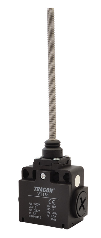 TRACON VT181 Helyzetkapcsoló, rugószáras (acél) 1xNO+1xNC, 6A/230V AC-15, 0,3A/250V DC-13, IP65