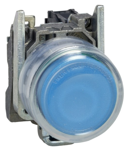SCHNEIDER XB4BP681EX ATEX D nyomógomb, fém, 1NO, kék, átlátszó védőspkával, címke tartóval