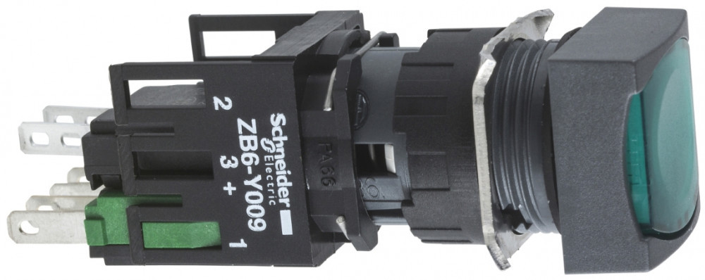 SCHNEIDER XB6CF3B1B Világító nyomógomb, szögletes, zöld