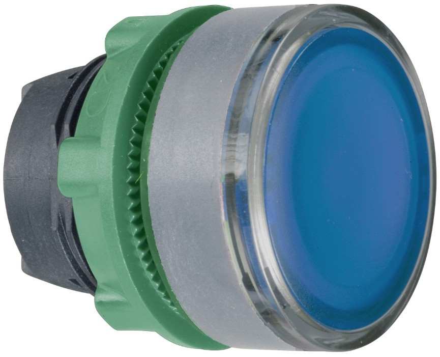 SCHNEIDER ZB5AW363SC0 Harmony műanyag világító nyomógomb fej, Ø22, visszatérő, beépített LED-hez, hornyolt lencsével, kék, szürke perem