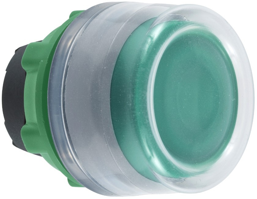 SCHNEIDER ZB5AW533C0 Harmony műanyag világító nyomógomb fej, Ø22, visszatérő, védősapkás, beépített LED-hez, zöld, szürke perem