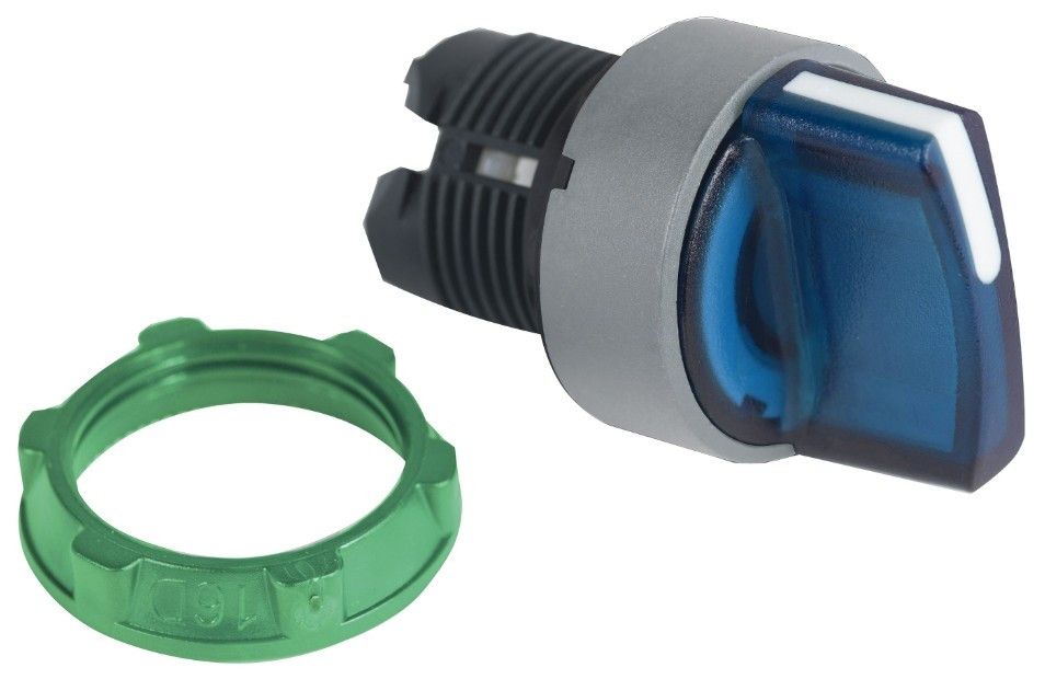 SCHNEIDER ZB5FK1863C0 Harmony panelbe süllyesztett műanyag világító választókapcsoló fej, Ø30, 3 állású, kék, jobbról közép vissza., szürke p.
