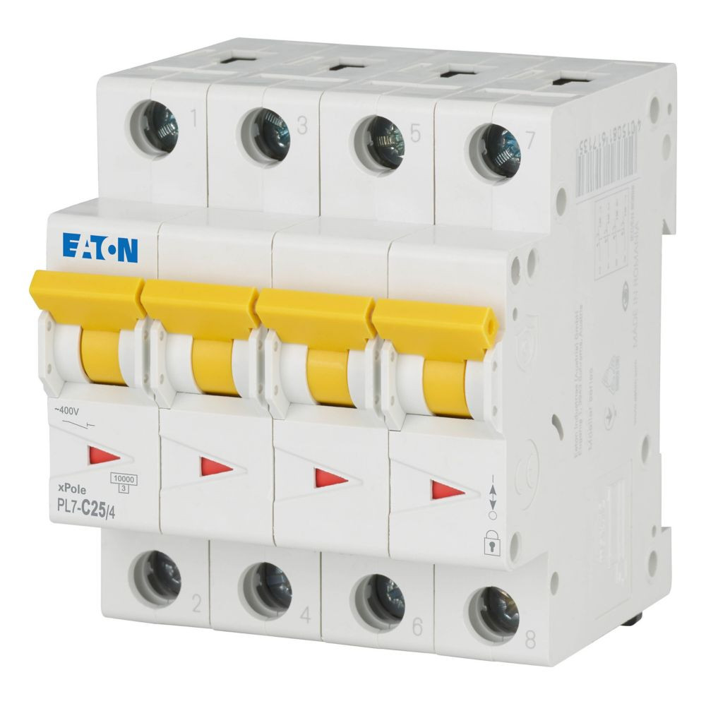 EATON 165180 PL7-C25/4 Kismegszakító, 10kA 4pól.