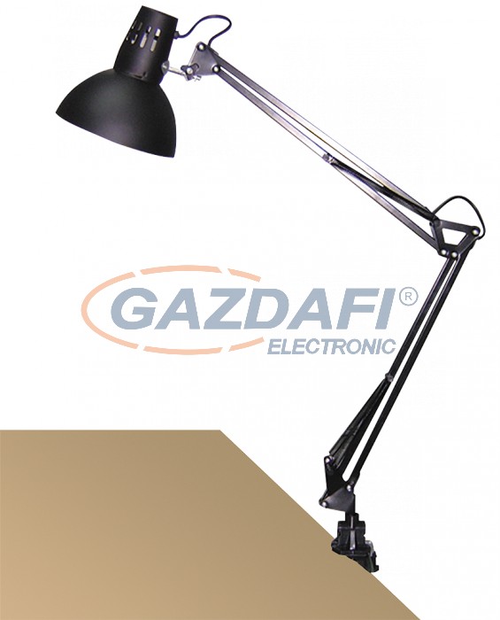 Nagyobb munkaterületen is megfelelő megvilágítást biztosító, időtlen megjelenésű asztali lámpa állítható karral és fejjel, 70 cm-es magassággal, fekete színben. Fém alapanyag, tartós kivitel, IP20-as védettség. A lámpatest E27-es foglalatú, maximum 60W teljesítményű halogén vagy energiatakarékos fényforrással használható.